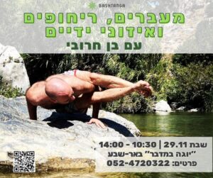 פנימה – אל המרחב סופ”ש של יוגה ותנועה אינטואיטיבית ב "זמן מדבר" – בערד בתאריך 4-6/12 מרגיש/ה שהגוף שלך מבקש לזוז אחרת? שהנשמה שלך מבקשת שקט – אבל גם תנועה, עומק ונשימה? בואי לגלות את השפה שהגוף כבר יודע לדבר בתוך השקט של המדבר, בירח המלא, נצלול יחד לסופ”ש שמכוון פנימה – דרך יוגה, נשימה